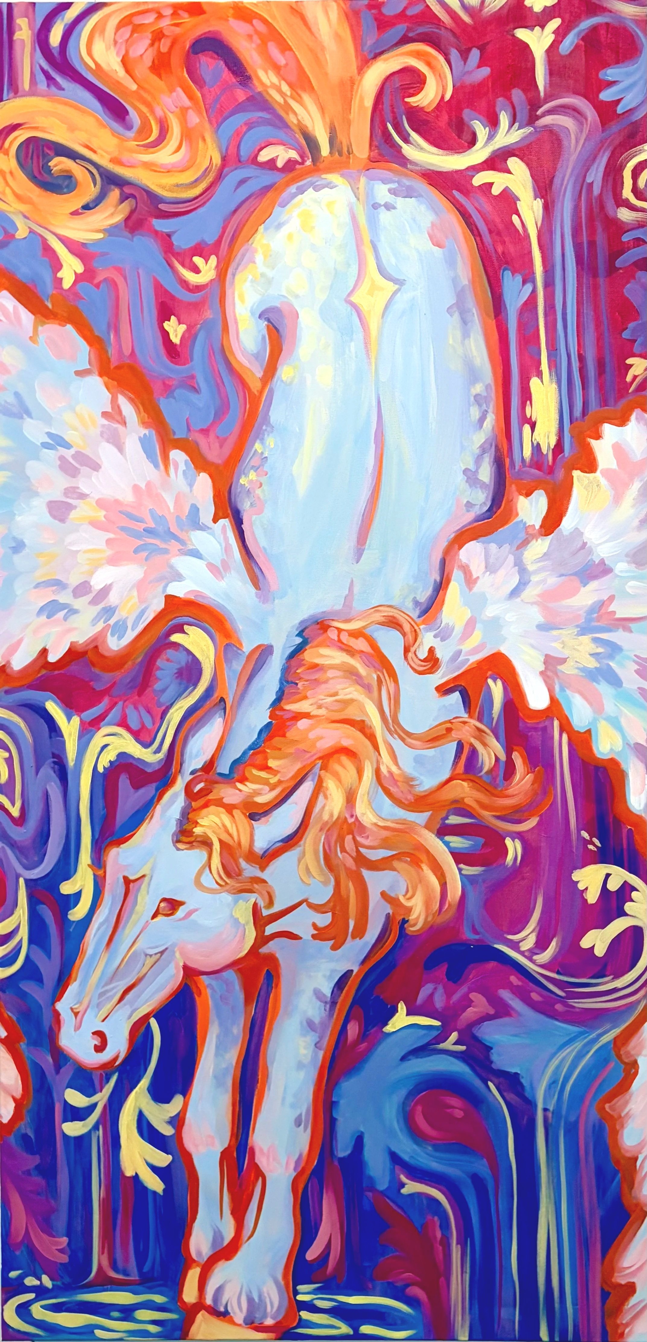 Sanctuary was created as a representation of myself. I've had an immense amount of independence and freedom growing up, similar to how the Pegasus has the ability of flight and freedom. The landing of the Pegasus represents finding security within that freedom in this time of my life and the comfort of finding my voice through my independence.