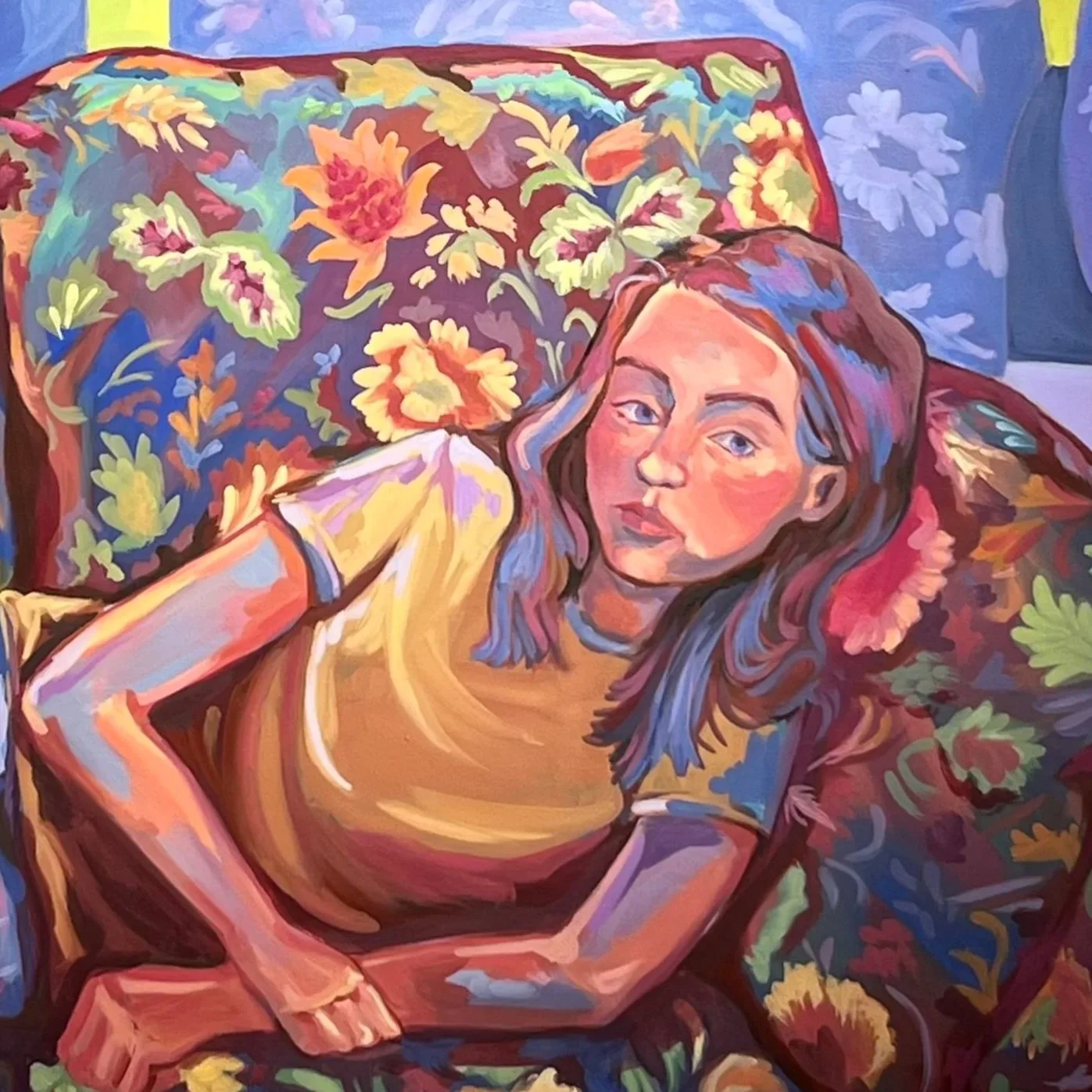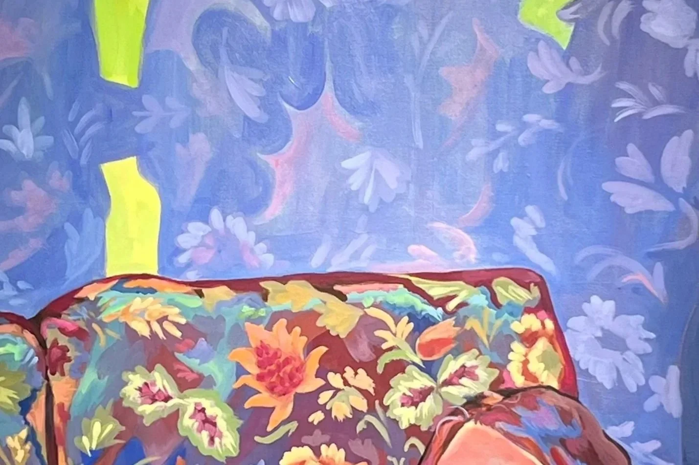 Soft Escape reflects on my experience losing both of my parents unexpectedly, and the days following their passing. I found comfort in tracing the patterns of my grandmothers couch, which distracted me from the unexpectedness of it all, and the amount of people visiting to show support. The piece represents disassociation, grief, and the chaos that I felt in that time of my life.